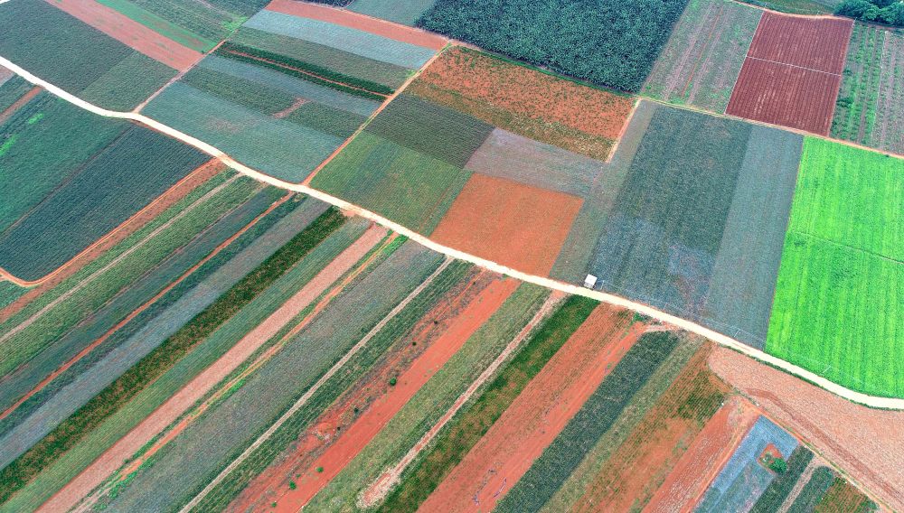 湛江市徐聞縣曲界鎮(zhèn)以菠蘿為主的多種作物農田(5月26日攝,無人機照片)。新華社記者 盧漢欣 攝