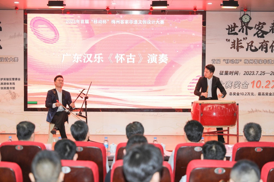 首屆“移動杯”梅州客家非遺文創(chuàng)設計大賽啟動儀式現(xiàn)場廣東漢樂表演。吳騰江 攝