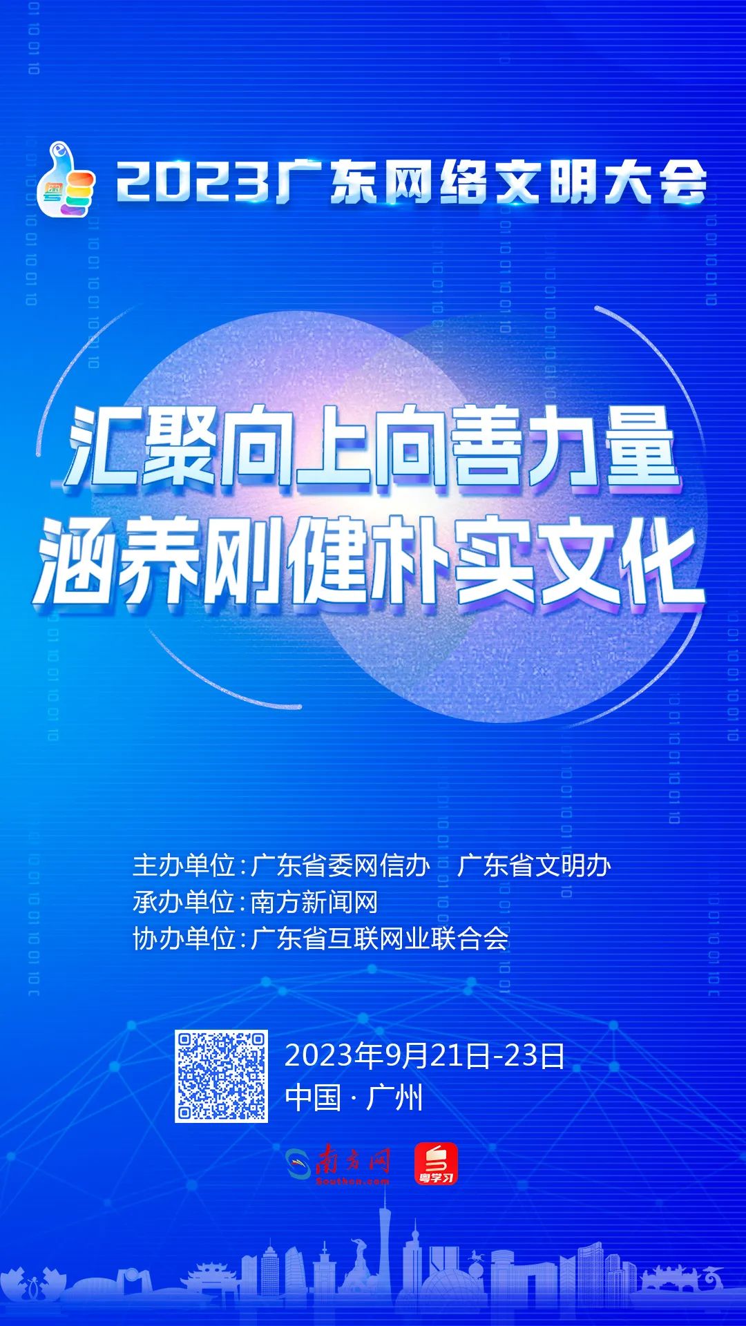 2023廣東網(wǎng)絡(luò)文明大會(huì)將于9月21日至23日在廣州舉行。本次大會(huì)以“匯聚向上向善力量 涵養(yǎng)剛健樸實(shí)文化”為主題,以“1+1+4”形式舉辦,即1場大會(huì)開幕式暨主論壇,1場粵港澳大灣區(qū)兒童互聯(lián)網(wǎng)大會(huì),以及網(wǎng)絡(luò)內(nèi)容建設(shè)、網(wǎng)絡(luò)法治建設(shè)、網(wǎng)絡(luò)誠信建設(shè)、文明實(shí)踐和網(wǎng)絡(luò)公益等4場主題論壇,全面展示廣東網(wǎng)絡(luò)文明建設(shè)新成效,引導(dǎo)廣大人民群眾提升網(wǎng)絡(luò)文明素養(yǎng),踐行網(wǎng)絡(luò)文明規(guī)范。