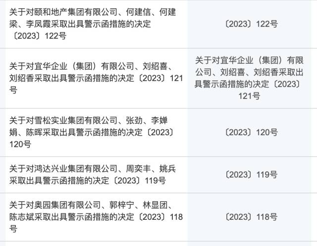 近日,廣東證監(jiān)局集中公布了多份行政監(jiān)管措施決定書。主要對奧園集團、鴻達興業(yè)集團、雪松實業(yè)集團、宜華企業(yè)、頤和地產(chǎn)等企業(yè)及相關(guān)責任人做出采取出具警示函措施的決定。主要原因是其作為公司債券發(fā)行人,未在規(guī)定期限內(nèi)披露年度報告或半年度報告等。這一行為違反了《公司債券發(fā)行與交易管理辦法》(證監(jiān)會令第180號)第四條、第五十條、第五十一條第一款的規(guī)定。按照決定書,前述公司應于收到?jīng)Q定書30日內(nèi)向廣東證監(jiān)局報送整改報告,并抄報上海證券交易所、深圳證券交易所。