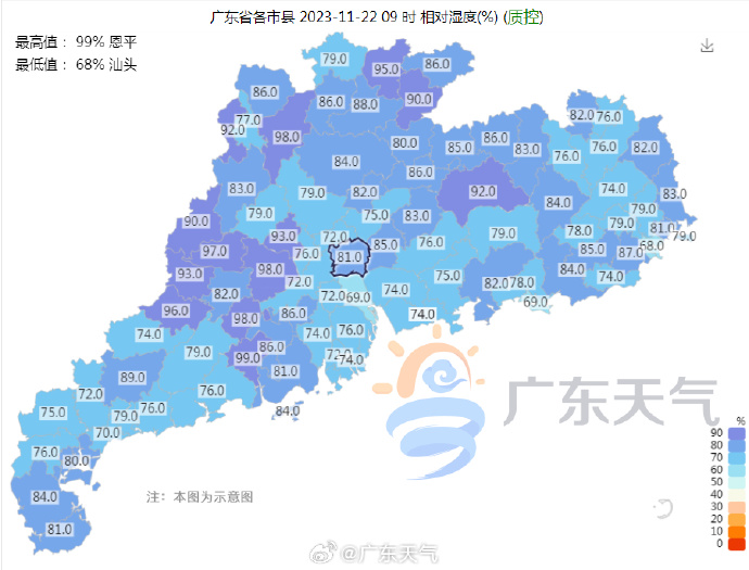 據(jù)@廣東天氣消息,11月22日09時,我省氣溫東部和北部清涼,中部和西部微涼。