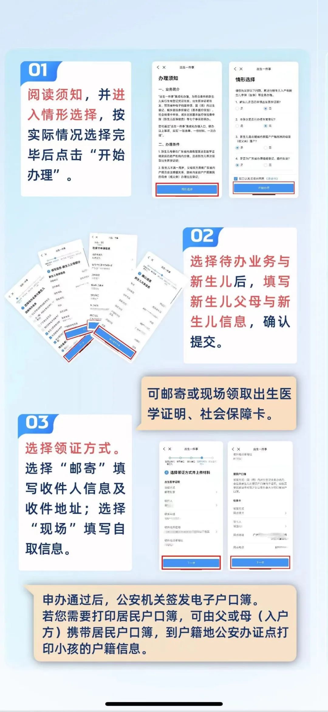 這7項集成化辦理的事項分別是:生育登記憑證辦理、出生醫(yī)學證明申領、預防接種電子檔案申領、國(境)內(nèi)出生登記、城鄉(xiāng)居民參保登記(基本醫(yī)療保險)、社會保障卡申領和城鄉(xiāng)居民基本醫(yī)療保險費申報(新生兒醫(yī)保繳費)。