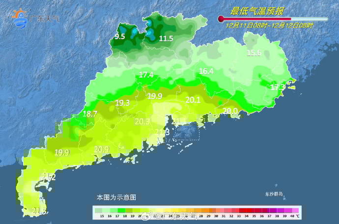今天(12月11日),清遠(yuǎn)、韶關(guān)多云到陰天,有分散小雨,其余市縣多云,局部有小雨;中西部市縣早晚有(輕)霧。最低氣溫:粵西、珠三角市縣21~24℃,其余市縣18~21℃。