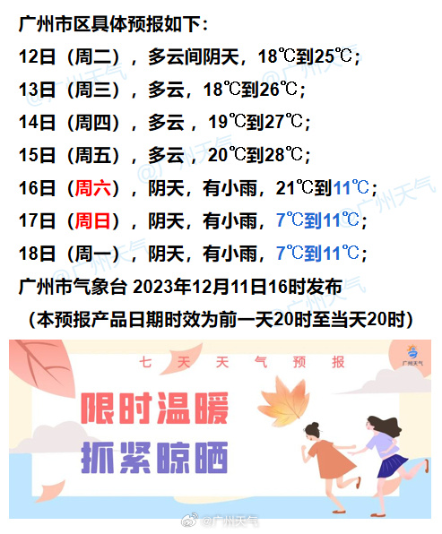 12日,受弱冷空氣影響,廣東最高氣溫略降;16日,強冷空氣將影響全省,過程氣溫普降9~13℃,有可能是先持續(xù)幾天陰冷,20日前后轉晴冷的模式。