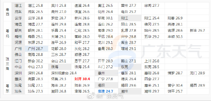 來源:中國天氣網、@廣東天氣、@廣州天氣