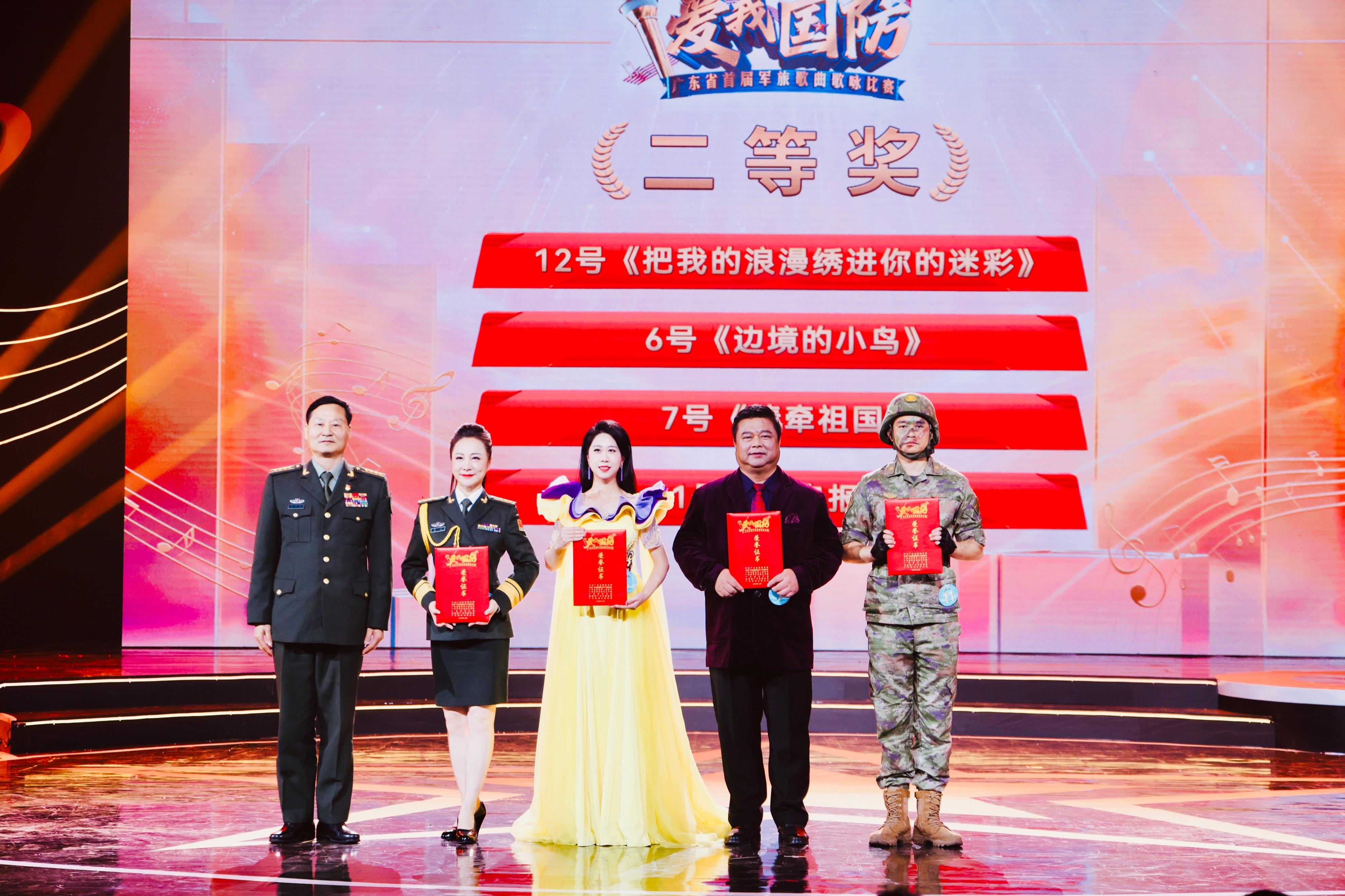 12月20日晚上,由中共廣東省委宣傳部、中共廣東省直屬機(jī)關(guān)工作委員會(huì)、廣東省退役軍人事務(wù)廳、廣東省軍區(qū)政治工作局、廣東省總工會(huì)、共青團(tuán)廣東省委員會(huì)、廣東省婦女聯(lián)合會(huì)聯(lián)合主辦,廣東廣播電視臺(tái)承辦、大灣區(qū)衛(wèi)視承制的“愛我國防——廣東省首屆軍旅歌曲歌詠比賽”在廣東廣播電視臺(tái)1600平方米演播廳舉行。通過全省各地層層選拔、從半決賽中脫穎而出的12組選手參與總決賽的角逐,爭奪一、二、三等獎(jiǎng)。