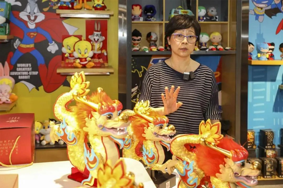 公司總經(jīng)理李琳表示,“純毛絨的‘吉祥龍’打樣出來之后,我們發(fā)現(xiàn)僅龍頭就有近100件裁片,一個熟練工人一天都未必能制作出一個,所以我們提議采用時下潮玩最常見的概念就是‘PVC+毛絨’,最后制作出的‘吉祥龍’龍頭更加逼真,也得到文化和旅游部及中央美院設(shè)計師的贊許。”