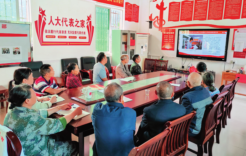廣東省韶關(guān)市仁化縣長(zhǎng)江鎮(zhèn)芭蕉垅村黨員收看黨的二十大精神專題培訓(xùn)(2023 年 11 月 3 日攝) 廣東省委組織部供圖