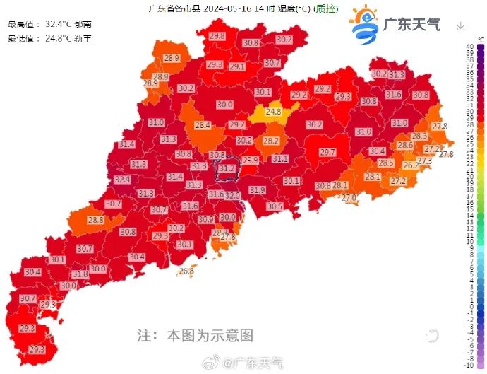 據(jù)@廣東天氣消息,預(yù)計(jì),16-17日,廣東大部市縣多云,陽光充足,西部市縣局部有短時(shí)陣雨;18日開始我省強(qiáng)降水和強(qiáng)對(duì)流天氣將趨于頻繁,其中18日中西部市縣率先轉(zhuǎn)中(雷)雨局部大雨或暴雨,19日,韶關(guān)、清遠(yuǎn)、珠江三角洲、茂名和陽江市縣有大雨局部暴雨或大暴雨,雨時(shí)局部伴有8級(jí)左右雷雨大風(fēng)和小冰雹。另外,16日,我省海面有東北風(fēng)6~7級(jí)陣風(fēng)8級(jí);17日減弱到5~6級(jí),海上作業(yè)活動(dòng)和交通注意安全。露天作業(yè)和戶外活動(dòng)注意防曬。