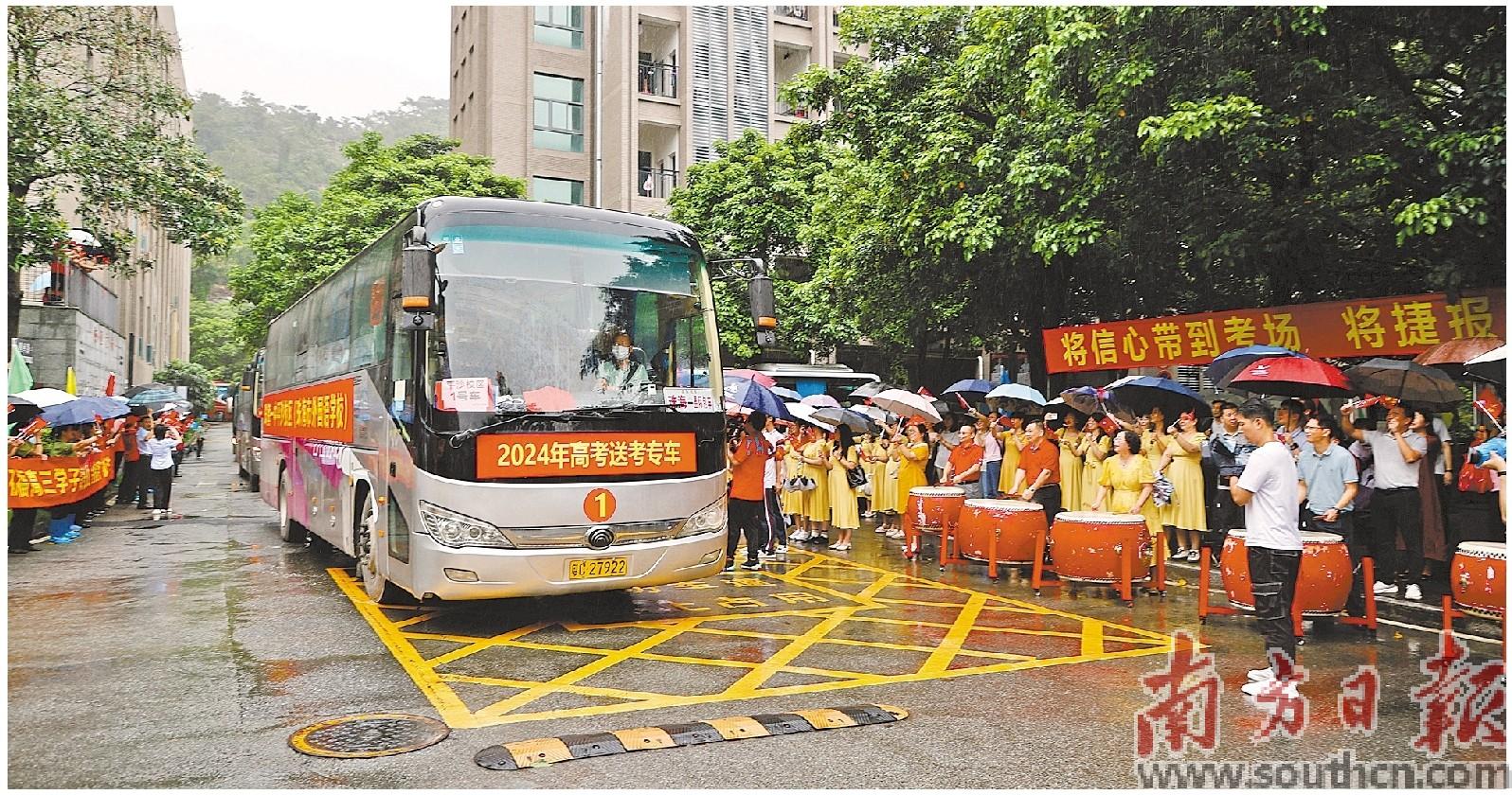 珠海第一中學(xué)平沙校區(qū)的學(xué)生乘坐大巴前往考點學(xué)校。南方日報記者 關(guān)銘榮 通訊員 張朝暉 攝
