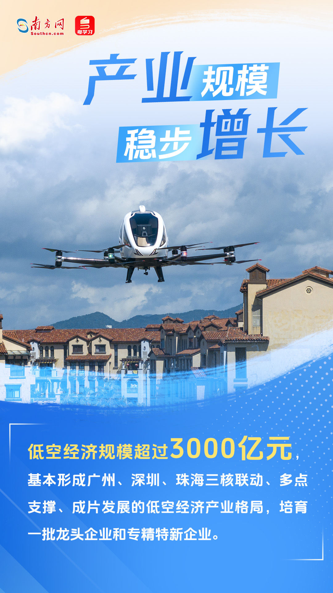 今年5月,廣東省人民政府辦公廳印發(fā)《廣東省推動(dòng)低空經(jīng)濟(jì)高質(zhì)量發(fā)展行動(dòng)方案(2024-2026年)》,提出到2026年,低空經(jīng)濟(jì)規(guī)模超過(guò)3000億元。