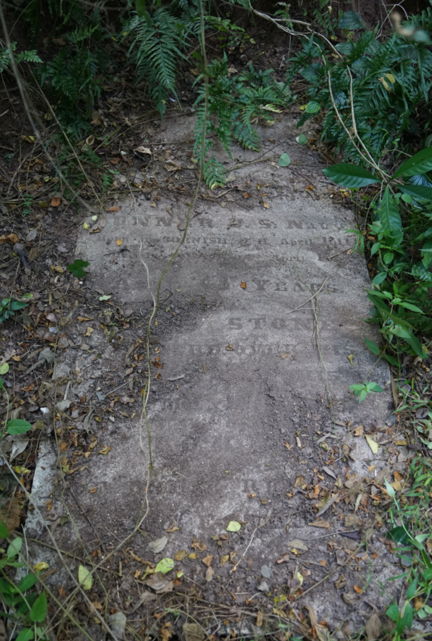 保存完好的三塊墓碑長度均在2.15-2.2米之間,寬度為0.64-0.68米之間。三塊墓碑平行放置,成同一水平面。文物專家根據(jù)碑文發(fā)現(xiàn),三位墓主均為美國東印度艦隊波瓦坦號(POWHATAN)和萬達利亞號(VANDALIA)的船員,安葬于1854年12月到1855年4月之間。