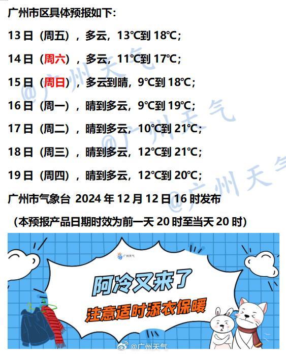 @廣州天氣預(yù)計(jì),未來(lái)三天冷空氣持續(xù)補(bǔ)充,廣州氣溫繼續(xù)下降,周日或下周一將出現(xiàn)本次過(guò)程最低溫,市區(qū)最低氣溫僅9℃左右,北部山區(qū)低至4~6℃。