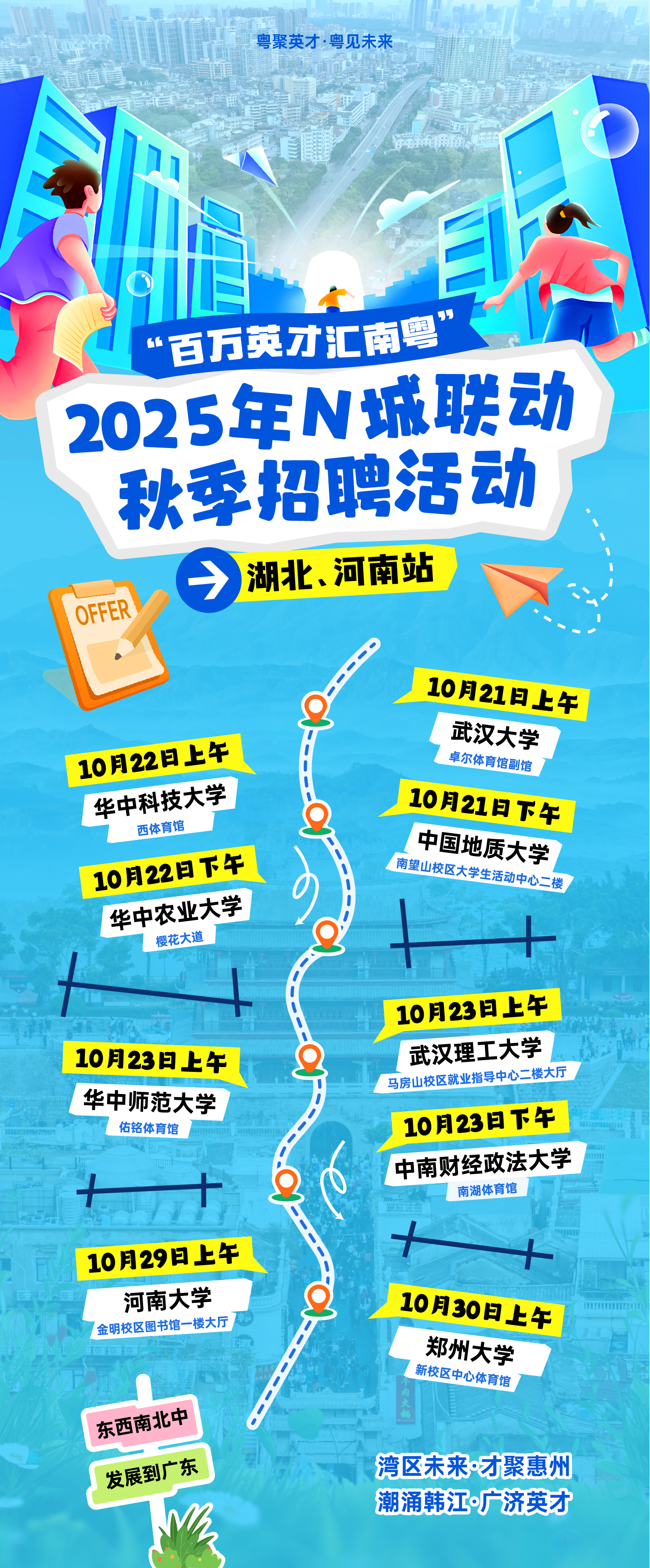 還在重復(fù) “海投簡(jiǎn)歷石沉大海” 的循環(huán)?想扎根經(jīng)濟(jì)活力滿滿的廣東,卻愁沒(méi)機(jī)會(huì)對(duì)接優(yōu)質(zhì)企業(yè)?別慌!10月21日起,“百萬(wàn)英才匯南粵” 2025年N城聯(lián)動(dòng)秋季招聘直接“空投”到鄂豫9所雙一流高校,好工作、貼心福利,全給安排上!