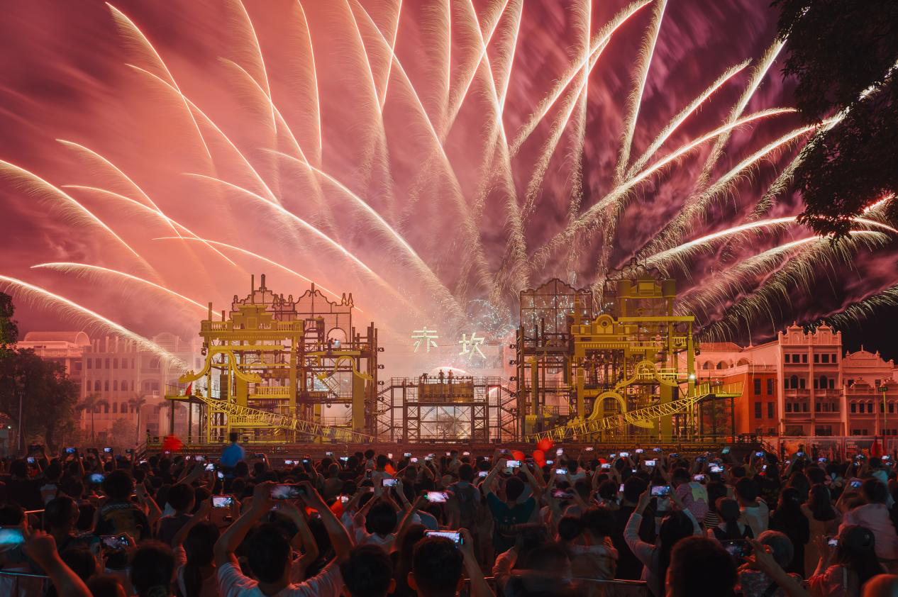 赤坎華僑古鎮(zhèn)大型演藝“水火秀”。(赤坎華僑古鎮(zhèn)景區(qū)供圖)