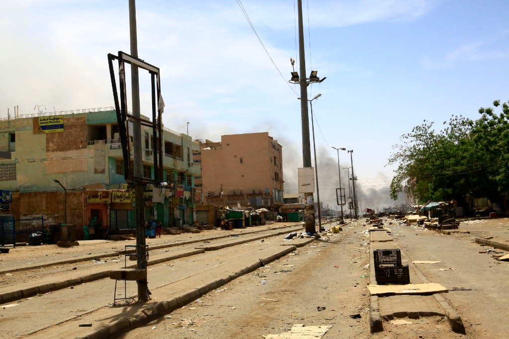 這是4月18日在蘇丹喀土穆拍攝的街頭景象。新華社發(fā)(穆罕默德·海德?tīng)枖z)