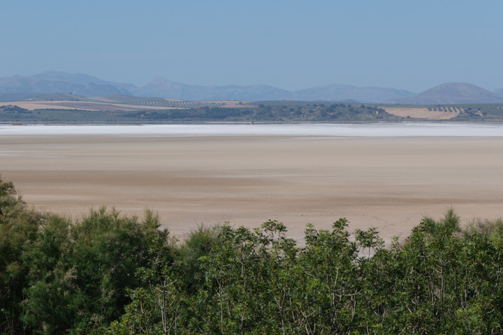 這是5月8日在西班牙馬拉加省拍攝的一處干涸的湖泊。新華社記者孟鼎博攝