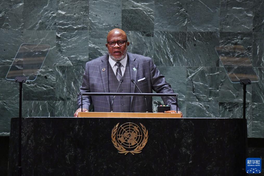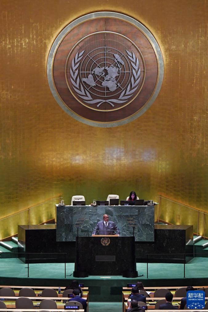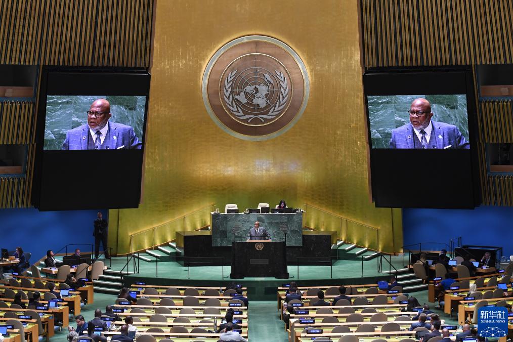 9月26日,在位于紐約的聯(lián)合國(guó)總部,第78屆聯(lián)大主席弗朗西斯(中)發(fā)表聯(lián)合國(guó)大會(huì)一般性辯論閉幕講話。 新華社記者李睿攝