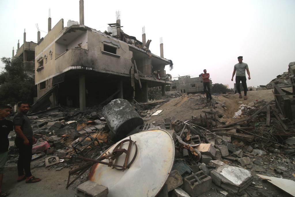 這是10月22日在加沙地帶南部城市汗尤尼斯拍攝的建筑廢墟。新華社發(fā)(哈立德·奧馬爾攝)