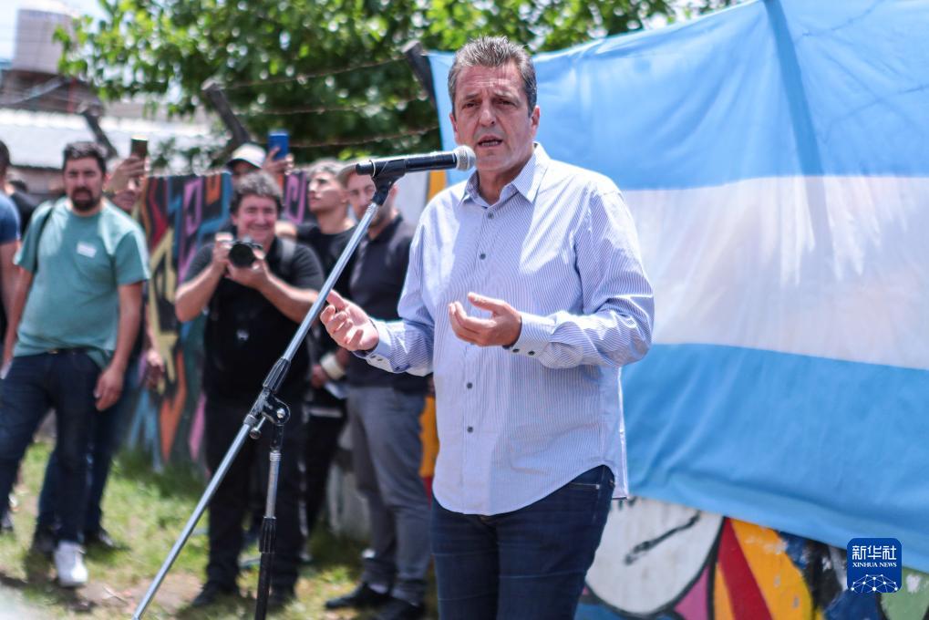 11月19日,阿根廷中左翼執(zhí)政聯(lián)盟祖國聯(lián)盟候選人馬薩在阿根廷布宜諾斯艾利斯省蒂格雷市的一處投票站投票后發(fā)表講話。新華社發(fā)(盧西亞諾·托雷斯攝)