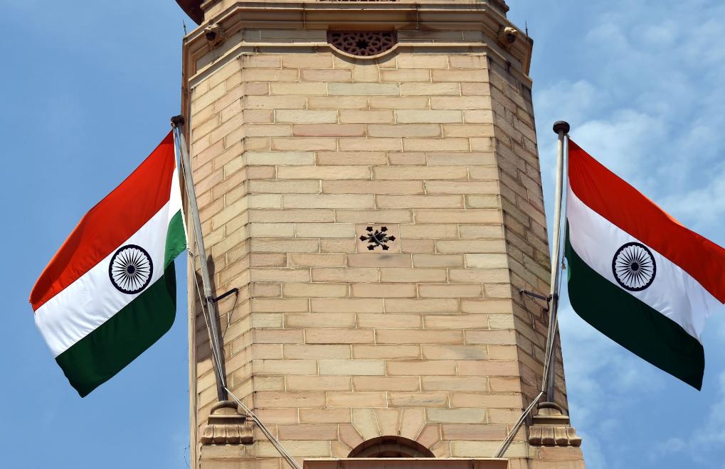 這是2019年8月8日在印度首都新德里拍攝的印度國旗。新華社記者張迺杰攝