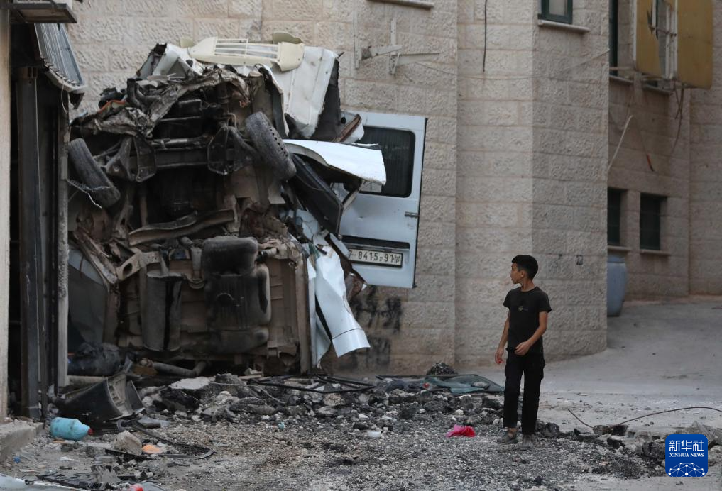 這是6月13日在約旦河西岸城市杰寧拍攝的遭以軍破壞的街道。新華社發(fā)(艾曼·諾巴尼 攝)