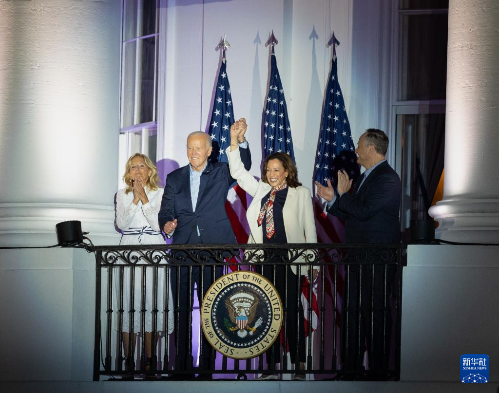 這是7月4日在美國華盛頓白宮拍攝的美國總統(tǒng)拜登(左二)和副總統(tǒng)哈里斯(右二)。新華社記者 胡友松 攝
