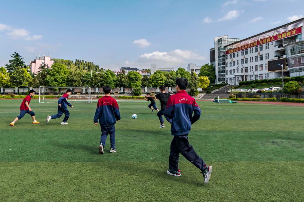 4月25日,在貴州黔西第一中學,學生在進行足球模塊實戰(zhàn)練習。新華社發(fā)(范暉攝)