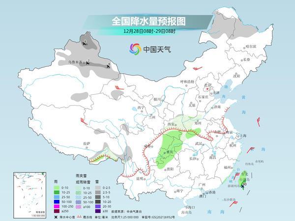 明天,新疆北部、內蒙古東北部、黑龍江西北部、西藏東南部、陜西中部等地部分地區(qū)有小雪或雨夾雪,其中,新疆沿天山地區(qū)和北疆北部等地部分地區(qū)有中到大雪(5~8毫米)。陜西南部、河南南部、西南地區(qū)東部、臺灣島等地部分地區(qū)有小到中雨,其中,臺灣島東部和南部等地部分地區(qū)有大雨(25~40毫米)。