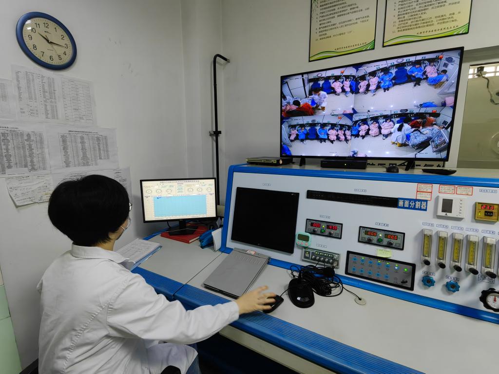 成都市第一人民醫(yī)院高壓氧科負(fù)責(zé)人龍虹宇在操作高壓氧艙治療儀。新華社記者 董小紅 攝