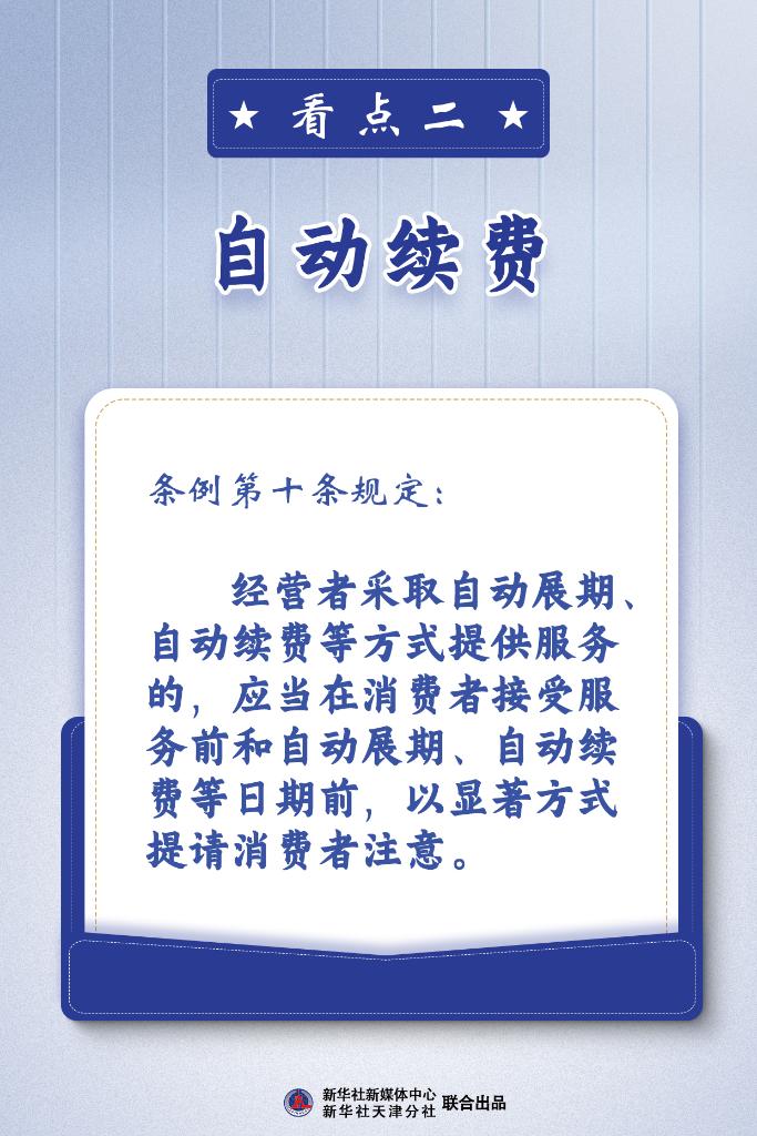 新華社天津6月29日電(記者白佳麗)消費(fèi)者權(quán)益保護(hù),事關(guān)億萬消費(fèi)者的福祉。《中華人民共和國消費(fèi)者權(quán)益保護(hù)法實(shí)施條例》將于今年7月1日正式施行。條例對大數(shù)據(jù)殺熟、自動續(xù)費(fèi)難取消、預(yù)付式消費(fèi)商家跑路等備受消費(fèi)者關(guān)注的問題,進(jìn)行了明確規(guī)定。記者梳理8大看點(diǎn),帶您讀懂條例。