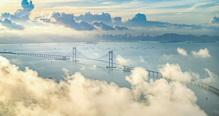 “零丁洋里嘆零丁”。700多年前,南宋愛國詩人文天祥曾在這里望洋興嘆。如今,來自大江南北的一萬多名建設(shè)者“七年磨一劍”,在伶仃洋上架天路、筑長城、造雙島,一個接一個基建“奇跡”,讓“嘆零丁”變“跨巨變”。