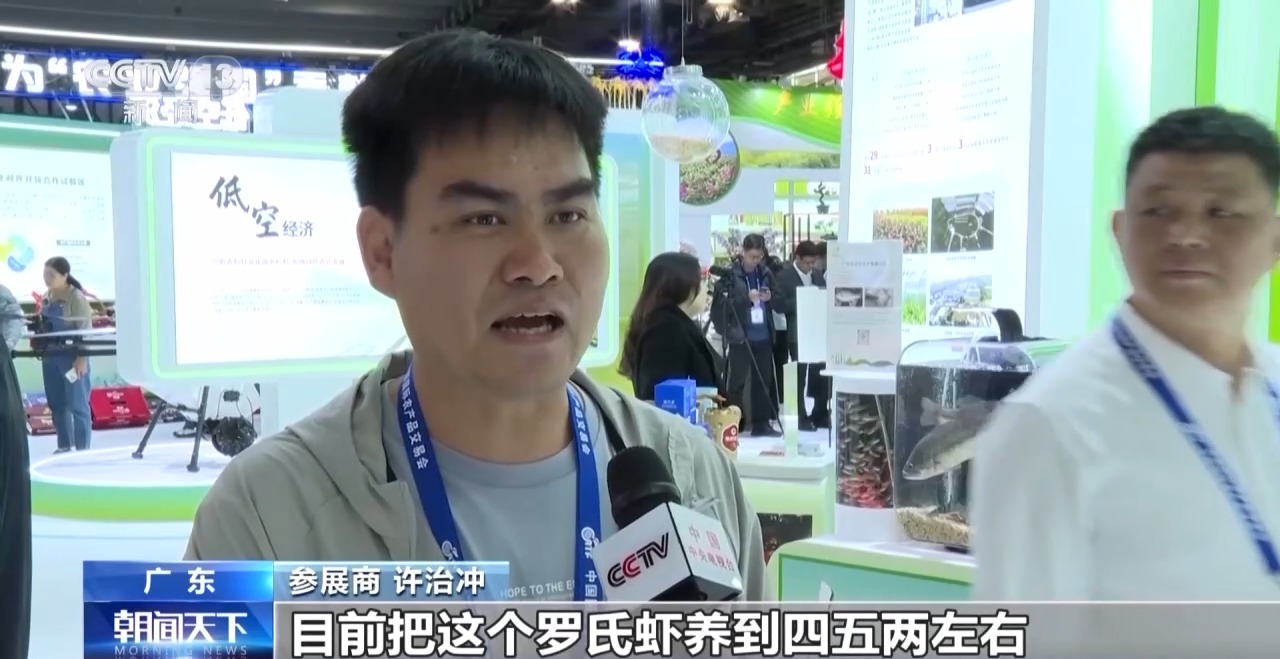 本屆農(nóng)交會共設(shè)有省區(qū)市品牌農(nóng)產(chǎn)品、鄉(xiāng)村幫扶產(chǎn)業(yè)精品、智慧農(nóng)業(yè)等12個展區(qū),重點聚焦促進(jìn)貿(mào)易等4方面內(nèi)容。廣東是我國最大的水產(chǎn)養(yǎng)殖省份,在現(xiàn)場不僅展示了科技感十足的AI養(yǎng)蝦應(yīng)用設(shè)備,參展商還帶來了經(jīng)過多年選育的大個頭羅氏蝦。
