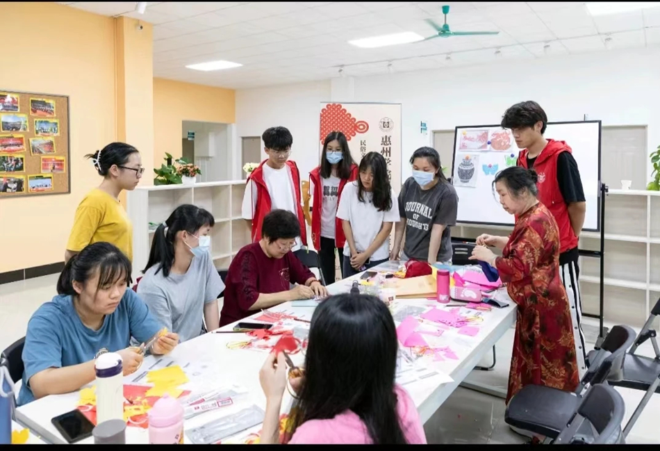 賈淑云在惠州學(xué)院推廣剪紙工藝。