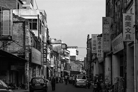 水東街是連接橋西惠州府城和橋東歸善縣城的重要通道,是惠州“一街挑兩城”古城格局的核心組成部分。明清時期,橋東為歸善縣中心,因三面環(huán)水的地理優(yōu)勢,成為惠州乃至東江中上游的交通樞紐,水東街也成為東江流域最重要的商品集散地之一。隨著東江水運交通的進一步發(fā)展,水東街商業(yè)日趨繁榮。1928年,“惠城改良街道委員會”開始改建水東街,擴寬路面,為其商業(yè)發(fā)展提供了更大的發(fā)展空間。直至今天,水東街仍然延續(xù)著自明清以來的商業(yè)功能,并保存了完整的民國風貌騎樓商業(yè)街和豐富的歷史文化遺存。