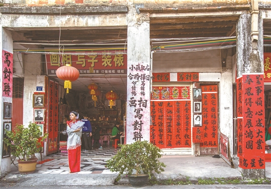 幾度興衰沉浮,幾許唏噓感慨。在水東街上游走,佇立于古舊的騎樓前,能感受到它的滄桑。每一次去都會有新的認識,水東街正是因為騎樓的存在,才變得意韻深長。一間茶館中,幾位老人正在屋內(nèi)悠閑地喝茶聊天,安詳怡然,仿佛一群大隱于市井的隱者,偶爾有三三兩兩衣著時髦的行人走過來,倒也有一種歷史與現(xiàn)實交替的感覺。