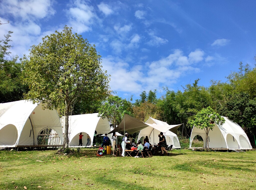 “羅浮山下的鄉(xiāng)村旅游近年蓬勃發(fā)展,游客絡(luò)繹不絕,鄉(xiāng)村經(jīng)濟(jì)活躍。”前些年,黃興華在家鄉(xiāng)建設(shè)農(nóng)莊,供自己和親友休閑度假。眼見(jiàn)著涌入村里的游客越來(lái)越多,2020年9月,黃興華決定從深圳回到村里創(chuàng)業(yè),為鄉(xiāng)村建設(shè)貢獻(xiàn)力量。懷揣著盤(pán)活農(nóng)村閑置資產(chǎn)、農(nóng)旅融合發(fā)展的方案,黃興華找到下浪村村干部,雙方一拍即合。黃興華注資成立的塱里稻香農(nóng)耕體驗(yàn)旅游(惠州市)有限公司,與下浪村委會(huì)簽訂村企合作項(xiàng)目協(xié)議,共同經(jīng)營(yíng)浮生六季生態(tài)園。在各方努力下,生態(tài)園一期項(xiàng)目在2021年春節(jié)開(kāi)門(mén)試業(yè)。