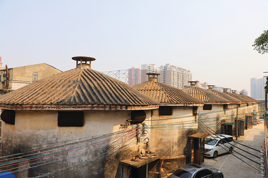 東江糧倉(cāng)文化創(chuàng)意產(chǎn)業(yè)園項(xiàng)目位于園洲鎮(zhèn)下南村沿江路,這里有8座蘇聯(lián)式的圓筒糧倉(cāng)、9座平方倉(cāng),還有原園洲人民公社舊址、園洲鎮(zhèn)第一家“三來(lái)一補(bǔ)”企業(yè)——紡織廠舊址等。其中,8座圓筒糧倉(cāng)建于1958年,采用紅磚墻面和圓拱形灰瓦屋頂,整體呈碉樓堡壘狀。隨著時(shí)代的發(fā)展,這里的建筑老化且多處于空心化狀態(tài)。