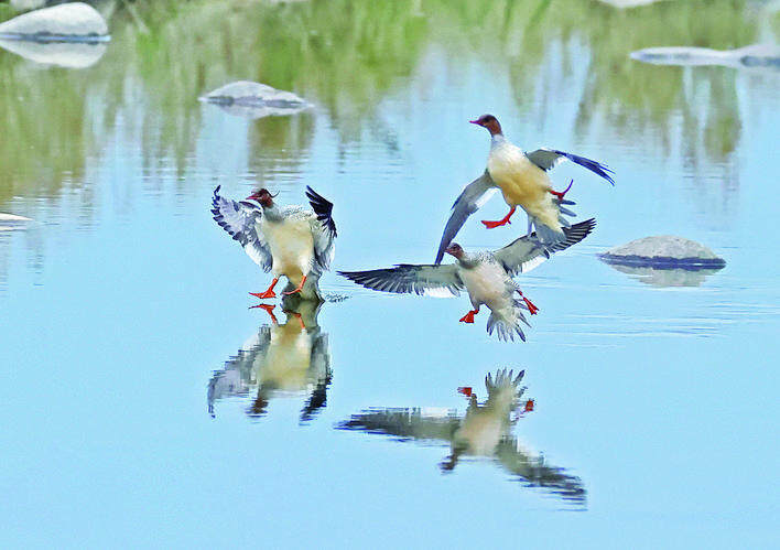現(xiàn)身惠東縣白盆珠的中華秋沙鴨。 惠州日報(bào)記者袁暢 李松權(quán) 通訊員陳惜輝 攝