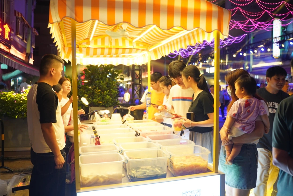 醒獅表演、龍華大鼓、燈光秀表演……6月1日晚,博羅縣福田鎮(zhèn)坳嶺村福明商業(yè)街人流攢動,熱鬧非凡。當(dāng)天,該商業(yè)街舉行揭牌亮燈儀式,60家特色美食、文創(chuàng)、特產(chǎn)小店進駐美食節(jié)現(xiàn)場,吸引眾多市民前來游玩。