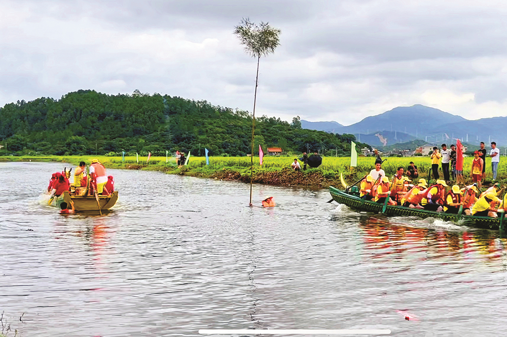 惠東稔山竹園村的別樣稻田龍舟賽。 惠州日報記者洪鵲兒 攝