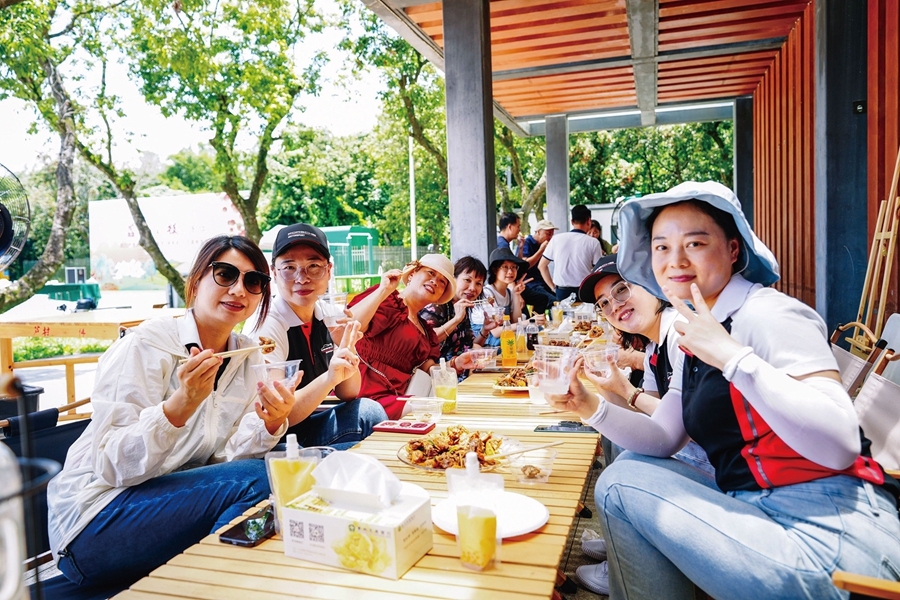 臨近中午,荔枝節(jié)又變了模樣,農(nóng)家宴席的鍋灶在會(huì)場(chǎng)熱氣蒸騰,來(lái)自惠州某車友會(huì)的會(huì)員家庭圍坐一起享受荔枝燜雞的美味。新鮮的鄉(xiāng)土食材讓大家胃口大開(kāi),個(gè)個(gè)贊不絕口。據(jù)了解,本次蘆洲鎮(zhèn)生態(tài)荔枝節(jié)除了接待保障個(gè)人出行的游客體驗(yàn),還設(shè)計(jì)了專屬的團(tuán)建活動(dòng)菜單,可以根據(jù)需求定向安排體驗(yàn)荔枝采摘、荔枝DIY和荔枝美食,讓團(tuán)隊(duì)游客更便捷更沉浸的感受原生態(tài)鄉(xiāng)土風(fēng)情。