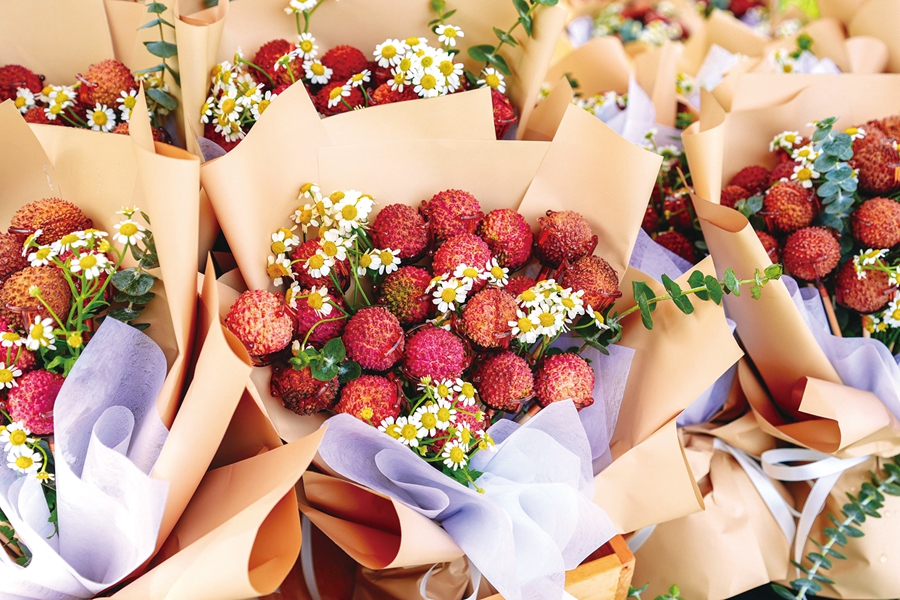 在精彩的開(kāi)幕表演后,由祥瑞麒麟吐出福氣“順荔”,在場(chǎng)觀眾紛紛接“順荔”享甜蜜,祈愿一切順心稱意。會(huì)場(chǎng)內(nèi)隨處可見(jiàn)游客手捧荔枝花束、禮盒打卡拍照的美好瞬間。