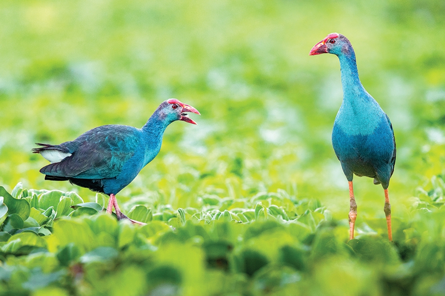 紫水雞是一種極其珍貴的大型水鳥,被譽(yù)為“世界上最美麗的水鳥”,其身上除尾下覆羽為白色外,其余羽毛均為藍(lán)紫色,腳暗紅色。紫水雞是留鳥,活動(dòng)于海拔1900米以下的流速較緩或平靜、多植被覆蓋的開闊水面和富營(yíng)養(yǎng)化的濕地。該物種主要分布于非洲、亞洲南部和大洋洲,在我國(guó)僅罕見于西南部地區(qū),屬世界級(jí)瀕危鳥類,19世紀(jì)后在世界各地都非常罕見。