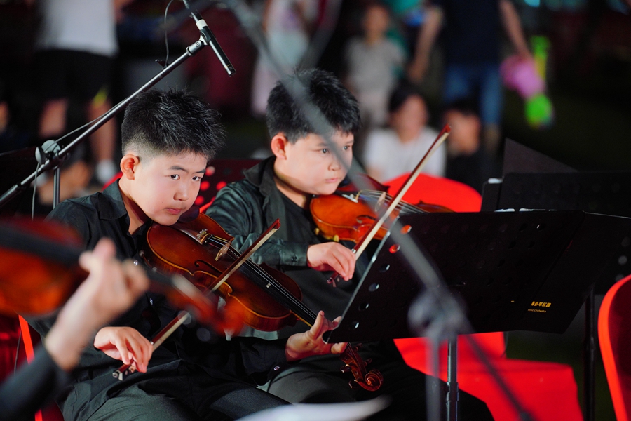 惠州愛(ài)樂(lè)青少年樂(lè)團(tuán)的小樂(lè)手登臺(tái)獻(xiàn)藝。