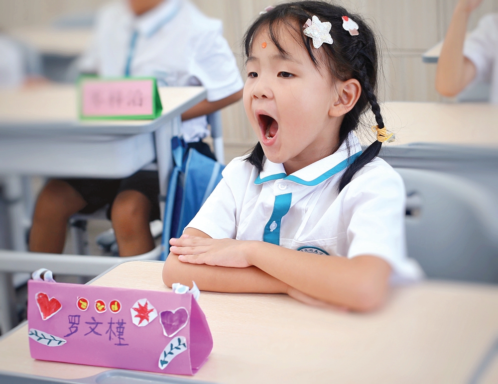 在博羅縣羅陽第四小學(xué),一大早,教室里就書聲瑯瑯。度過一個(gè)暑假的孩子們回到學(xué)校,表現(xiàn)各異,有的孩子還沒適應(yīng)開學(xué)的作息時(shí)間,有的還帶著來不及吃的早餐走進(jìn)教室,一些低年級(jí)的孩子則哭鬧著不讓父母離開,也有的孩子與朋友們重逢,玩得不亦樂乎。