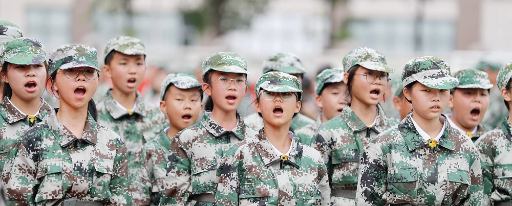 軍訓(xùn)中,惠臺(tái)中學(xué)新生精神抖擻。