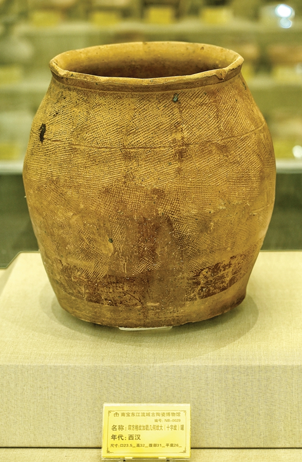 鎮(zhèn)館之寶: 西漢印格紋加戳幾何紋大(十字紋)罐