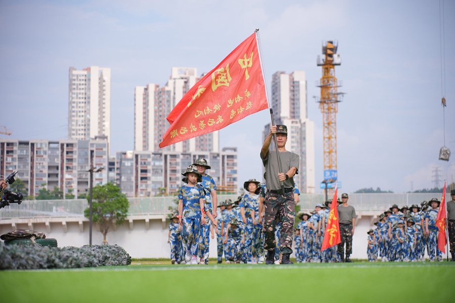 親子國(guó)防兵戎裝登場(chǎng),家長(zhǎng)斗志昂揚(yáng),孩子精神飽滿。據(jù)介紹,本次運(yùn)動(dòng)會(huì)以親子游樂為主,具體就是“大兵小兵齊上陣,軍事游戲大挑戰(zhàn)”。下午的操場(chǎng)上暖陽(yáng)和煦,歡快的入場(chǎng)曲在空中回蕩,鮮艷的隊(duì)旗隨風(fēng)揚(yáng)起。在總教官帶領(lǐng)下,身著迷彩服的“大兵小兵”們操練起剛勁有力的大會(huì)操,每個(gè)人臉上都洋溢著陽(yáng)光自信的微笑。