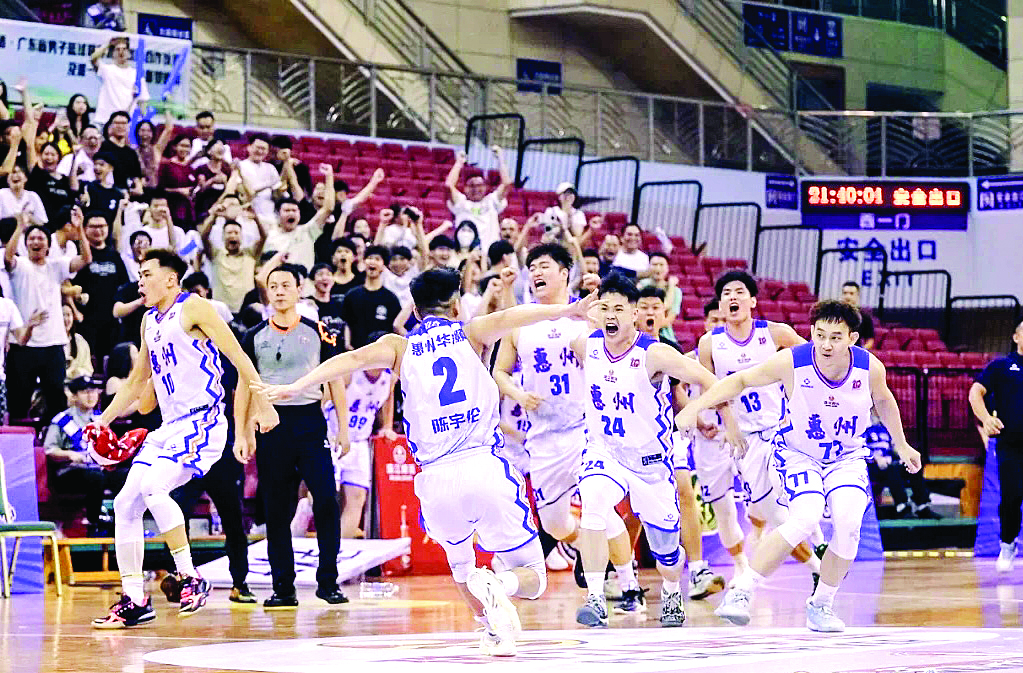 惠州華灝男籃隊(duì)員賽后慶祝勝利。圖片由市文廣旅體局提供